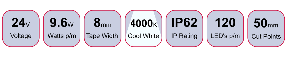 The strip contains 600 LED's per 5m roll and has a width of 8mm perfect for 10mm profiles.
